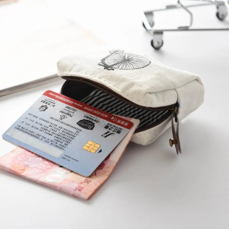 Women's Retro Small Canvas Coin Bags Purse Money Wallet ID Credit Card Holder Earphones Keys Storage Bags Zipper Square Pouch
